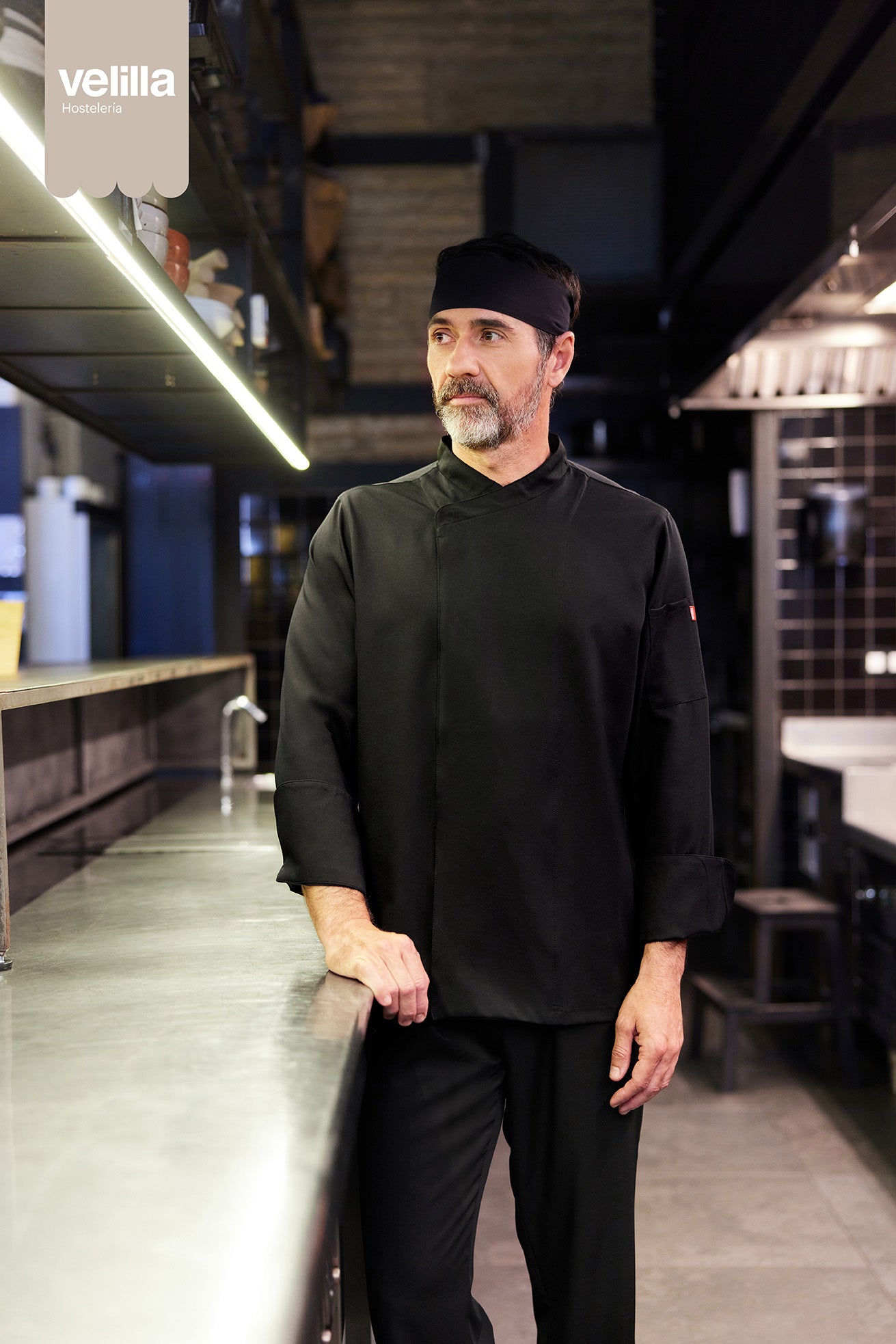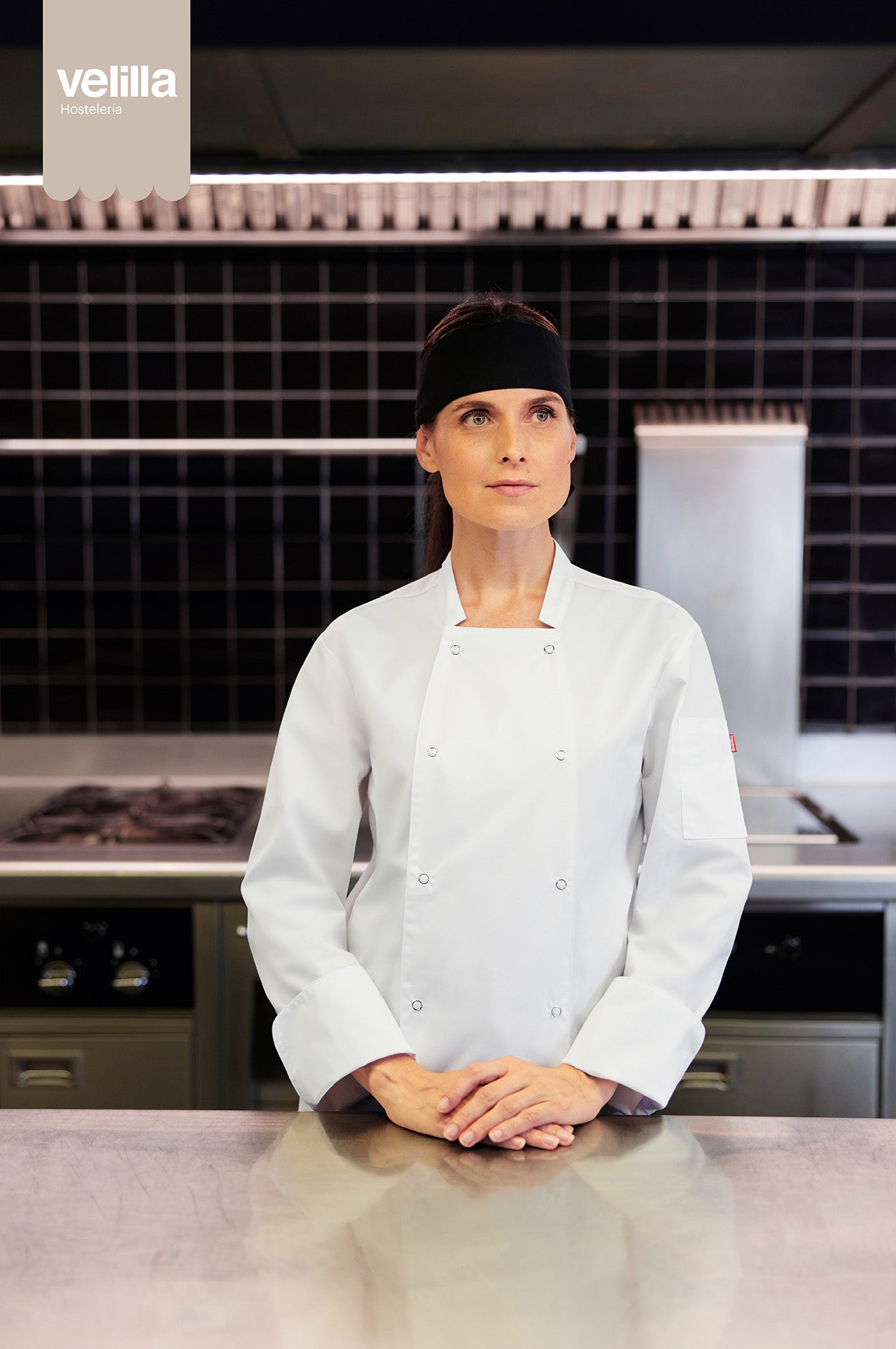 Bandana Velilla 404005 este realizată din bumbac organic 100% (120 g/mp), cu o țesătură moale și absorbantă, perfectă pentru utilizare zilnică în bucătărie sau spații de lucru. Designul stil japonez permite legarea ușoară pe frunte.Caracteristicile principale ale produsului: