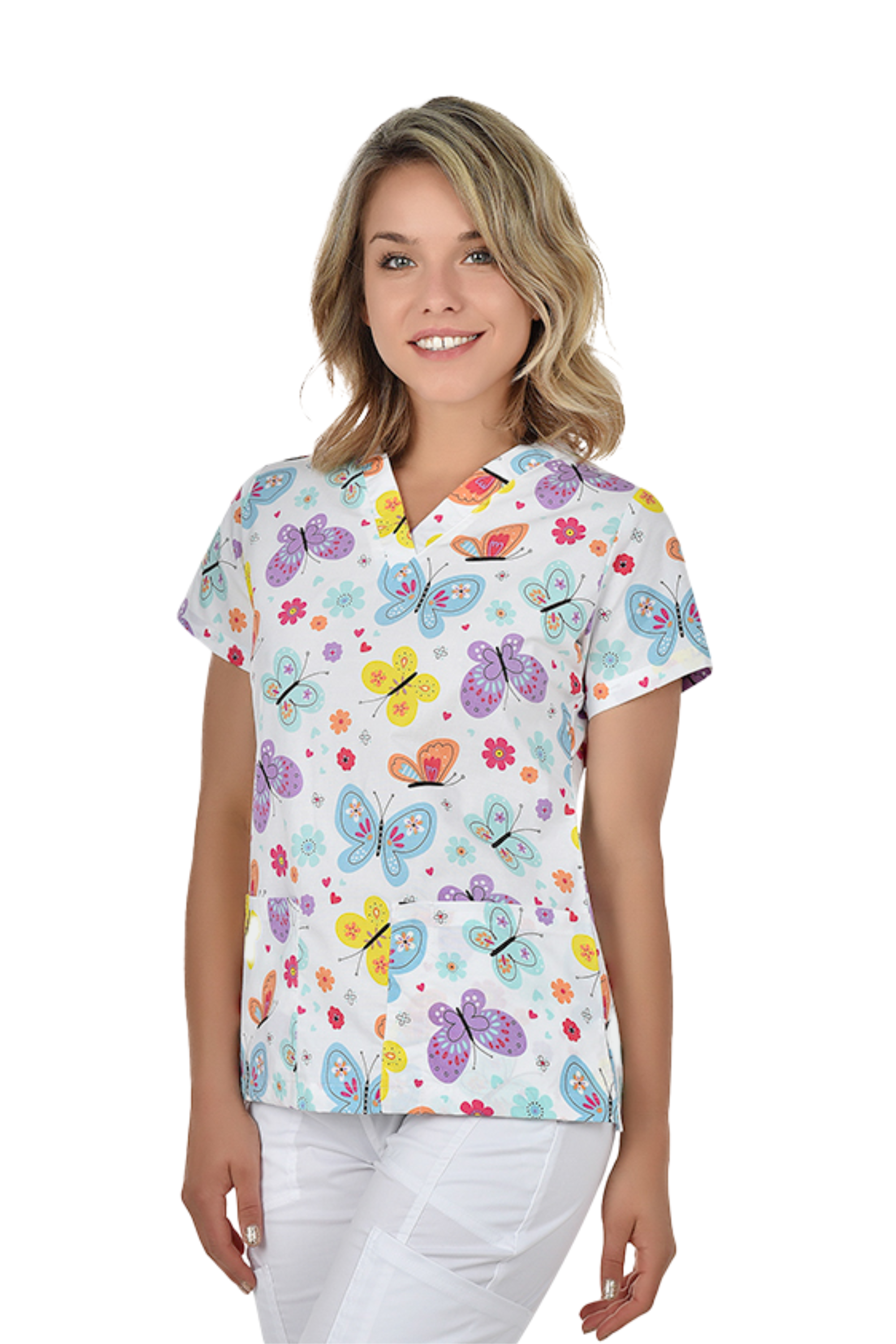 Bluza medicala imprimata unisex fluturi tercot 140g Bambina