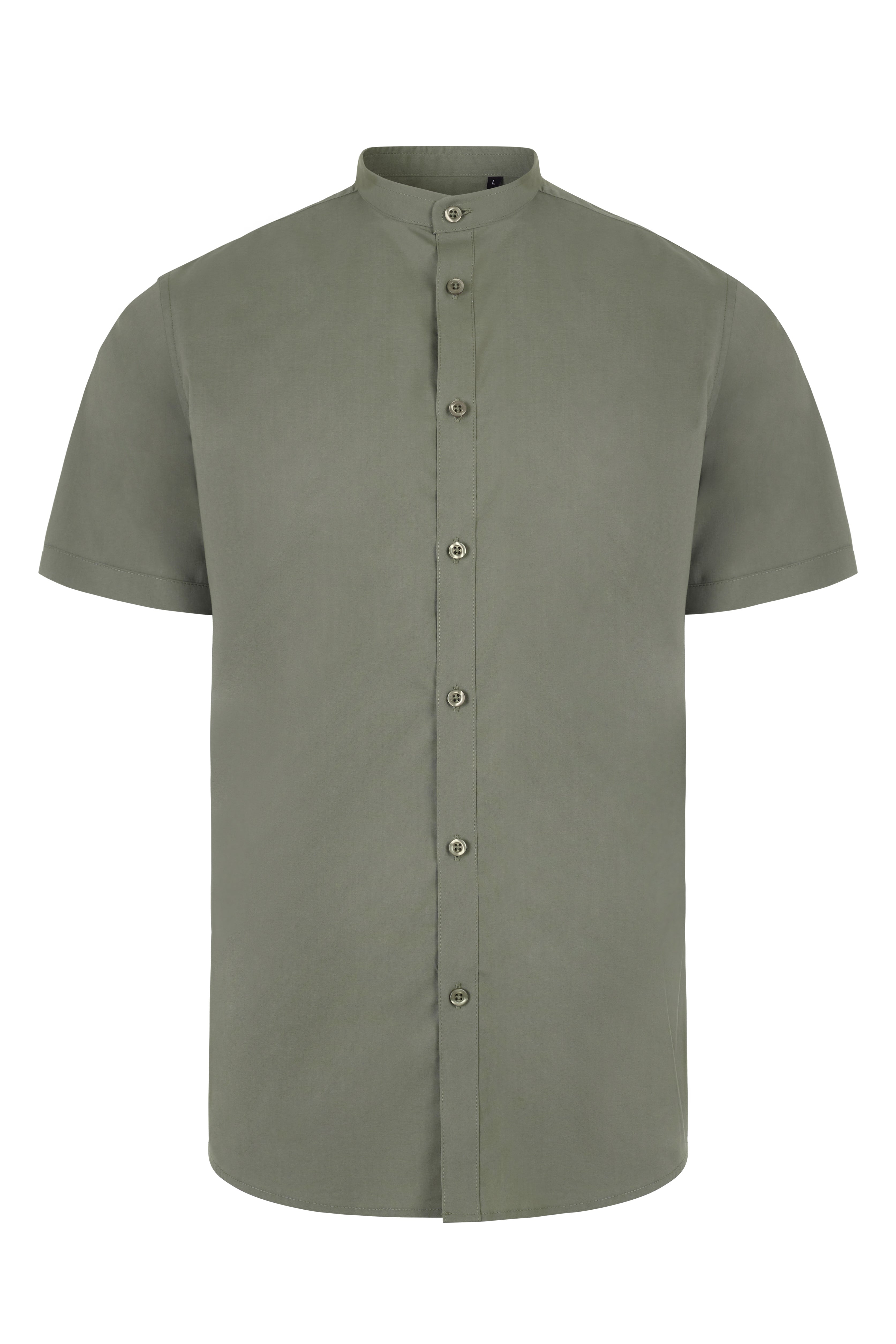 Camasa barbat maneca scurta poplin stretch guler tunica verde masliniu deschis V405012S