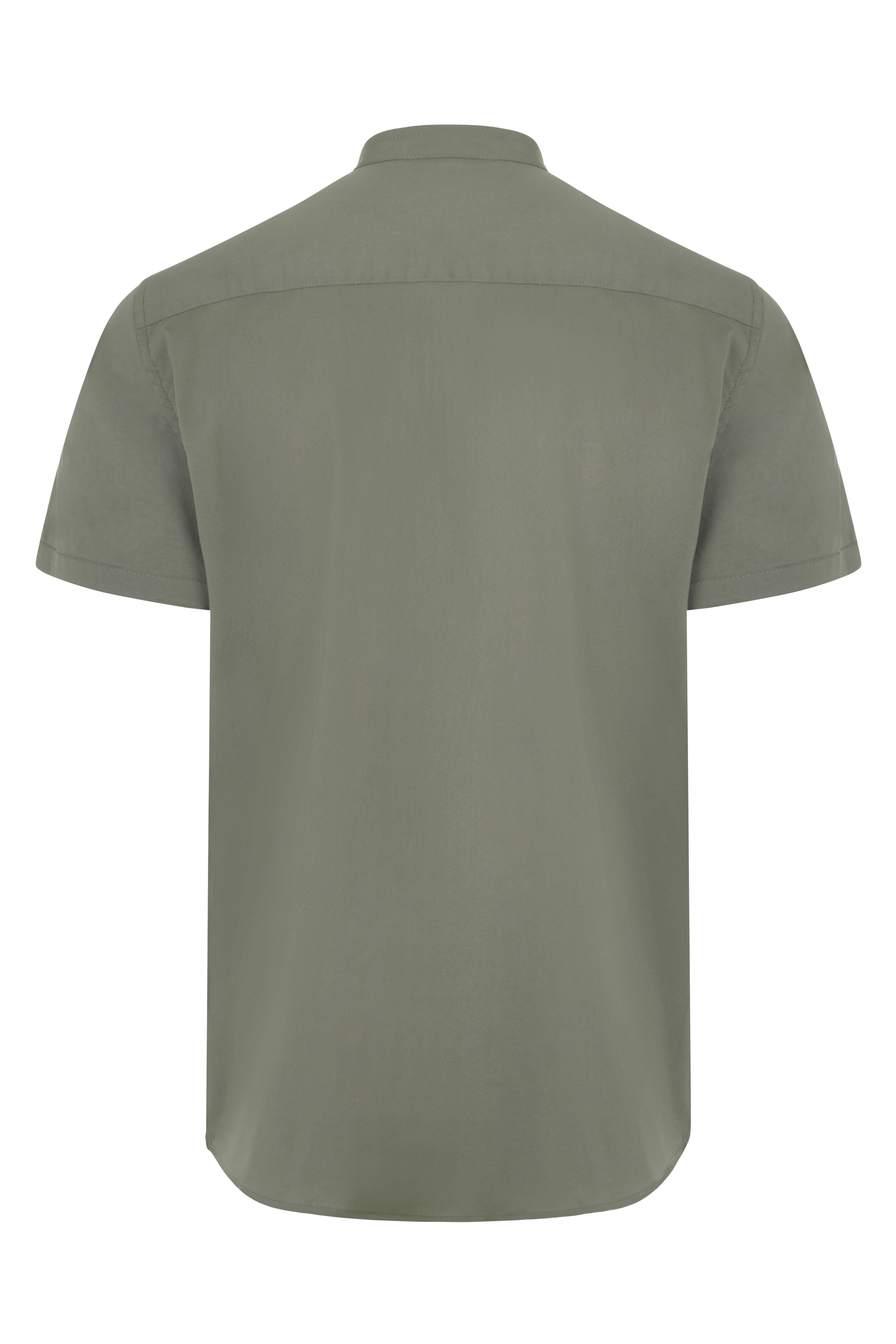 Camasa barbat maneca scurta poplin stretch guler tunica verde masliniu deschis 405012S