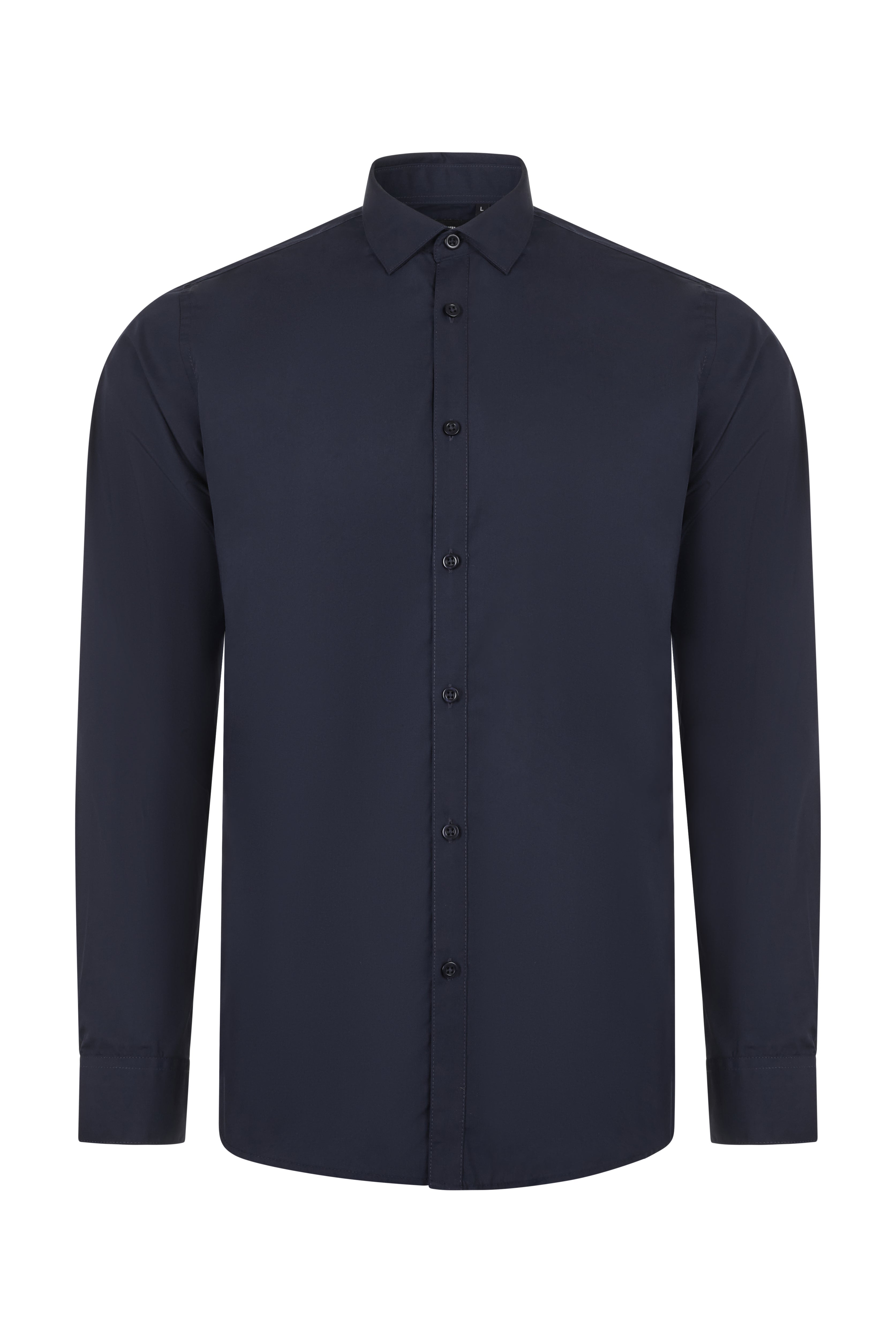 Camasa barbat maneca lunga poplin stretch guler tunica albastru marin V405013S