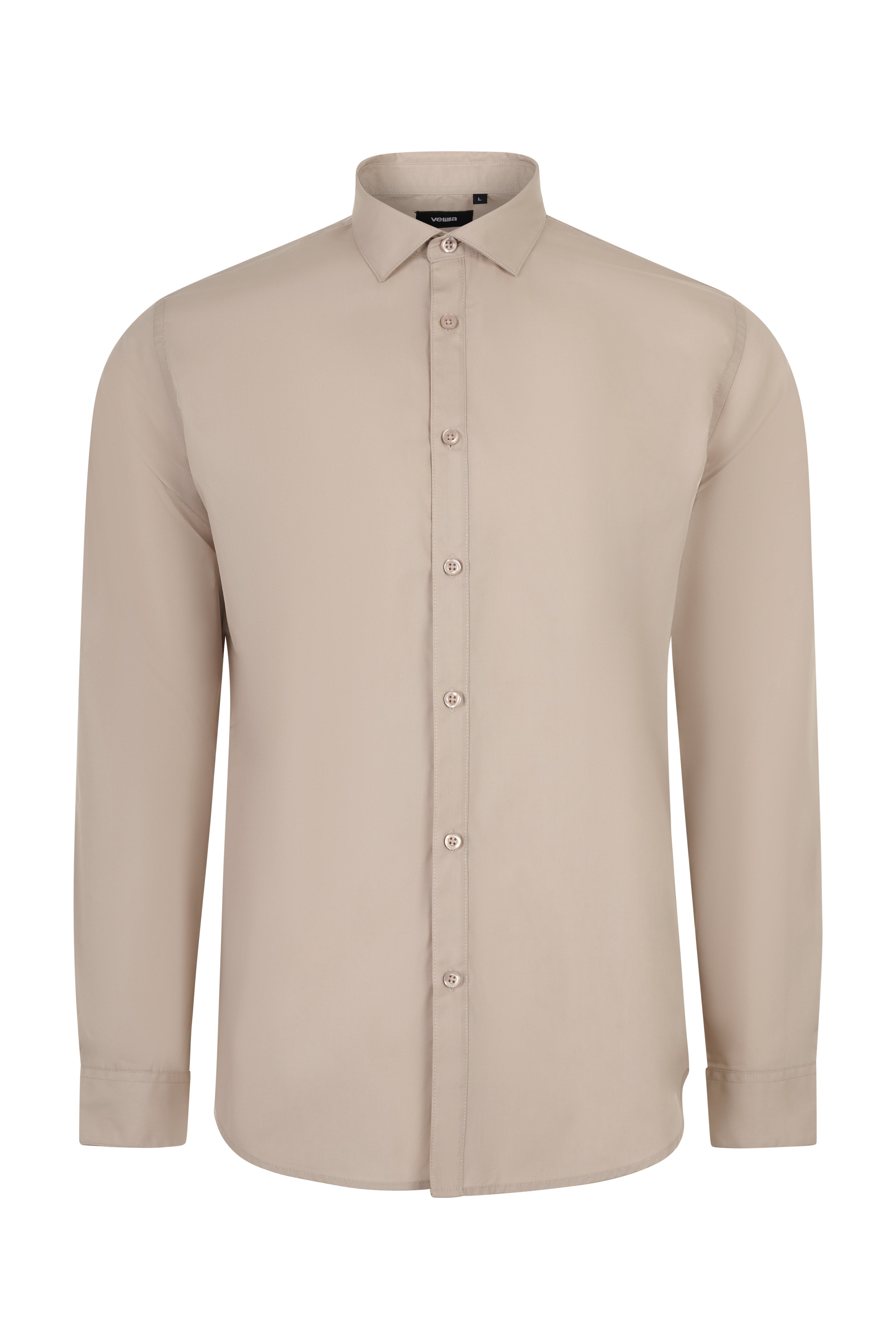 Camasa stretch de barbat cu maneca lunga bej deschis V405017S