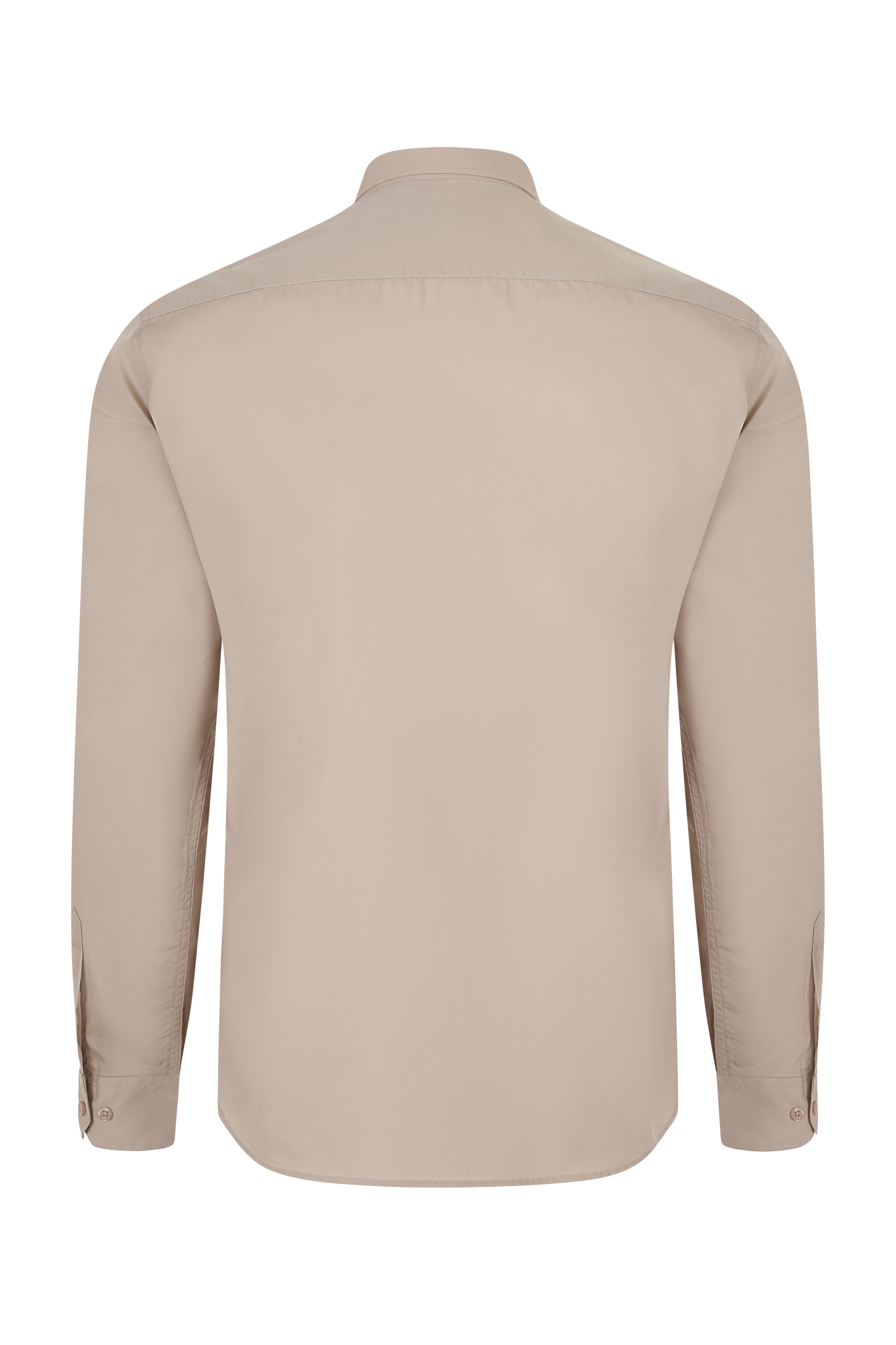 Camasa barbat maneca lunga poplin stretch guler tunica bej deschis V405013S