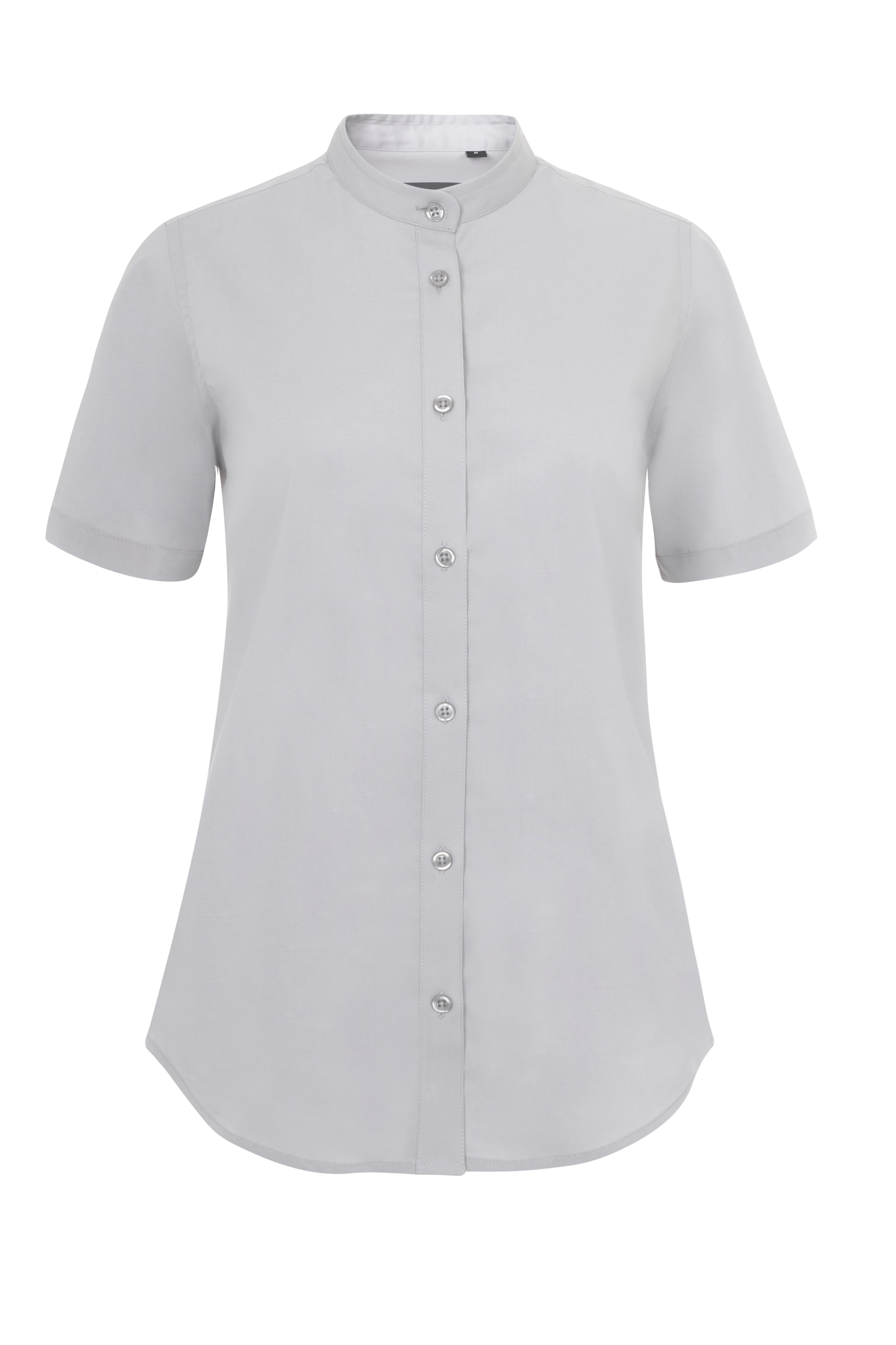 Camasa dama maneca scurta poplin stretch guler tunica gri gheata 405014S