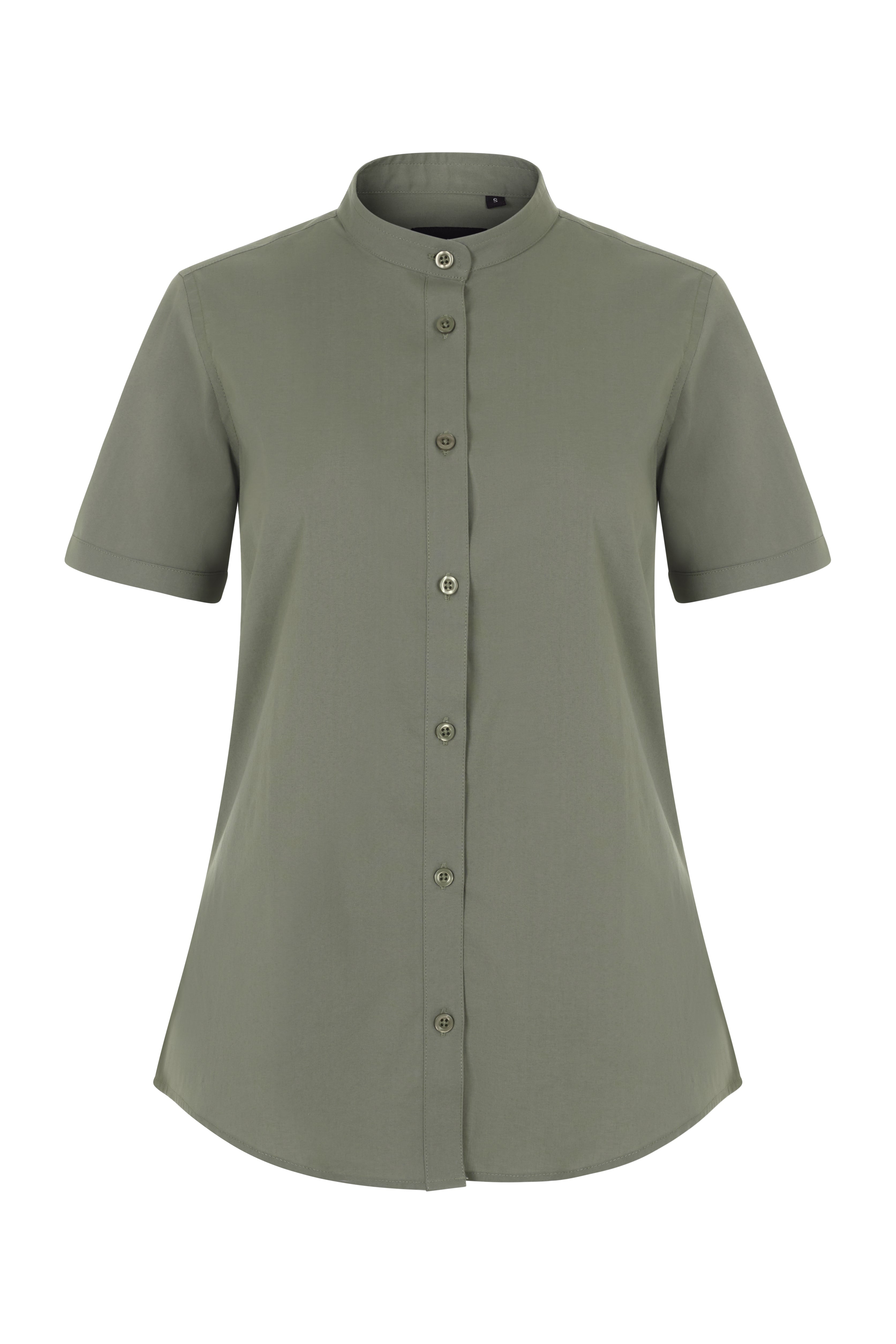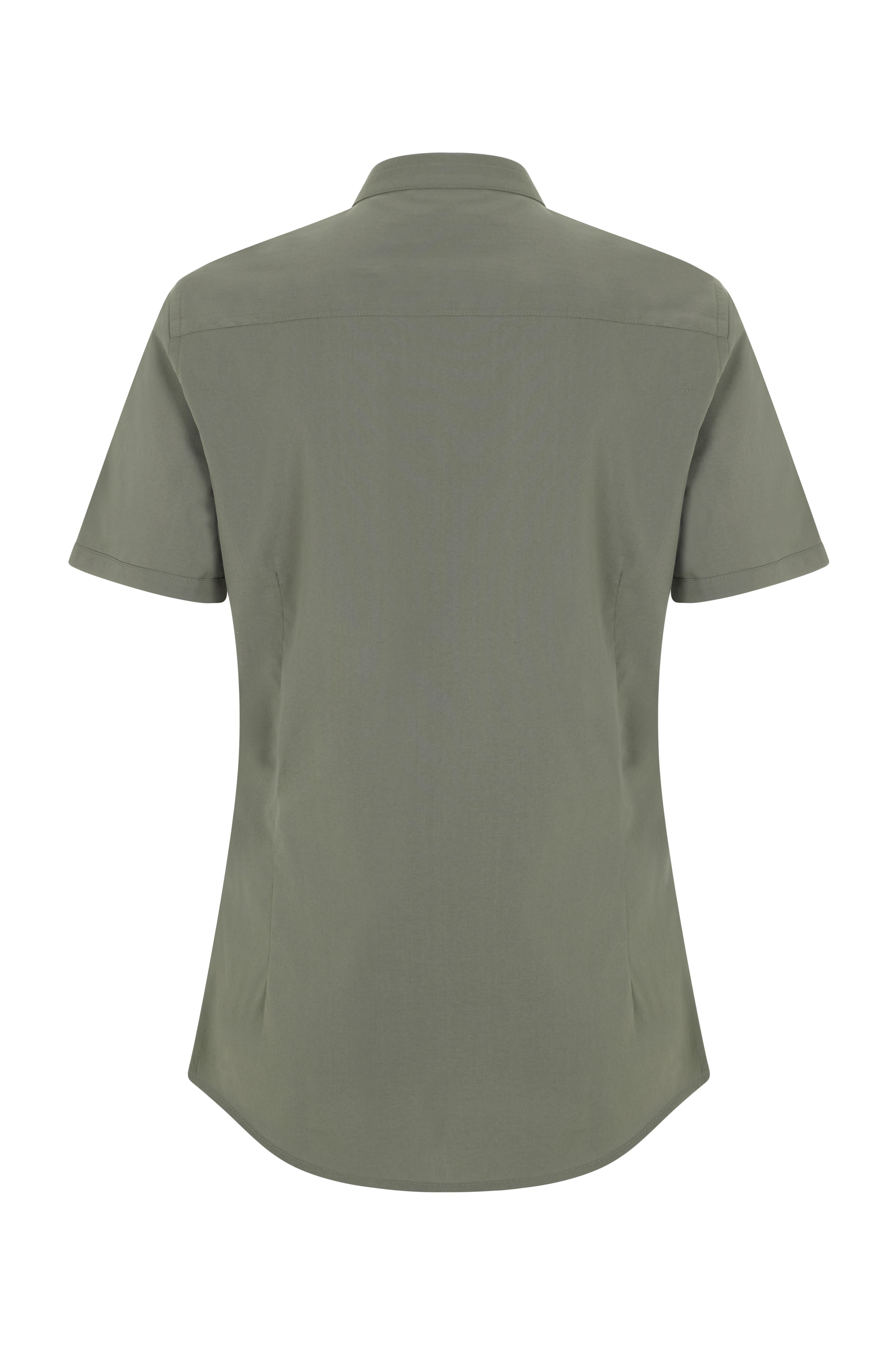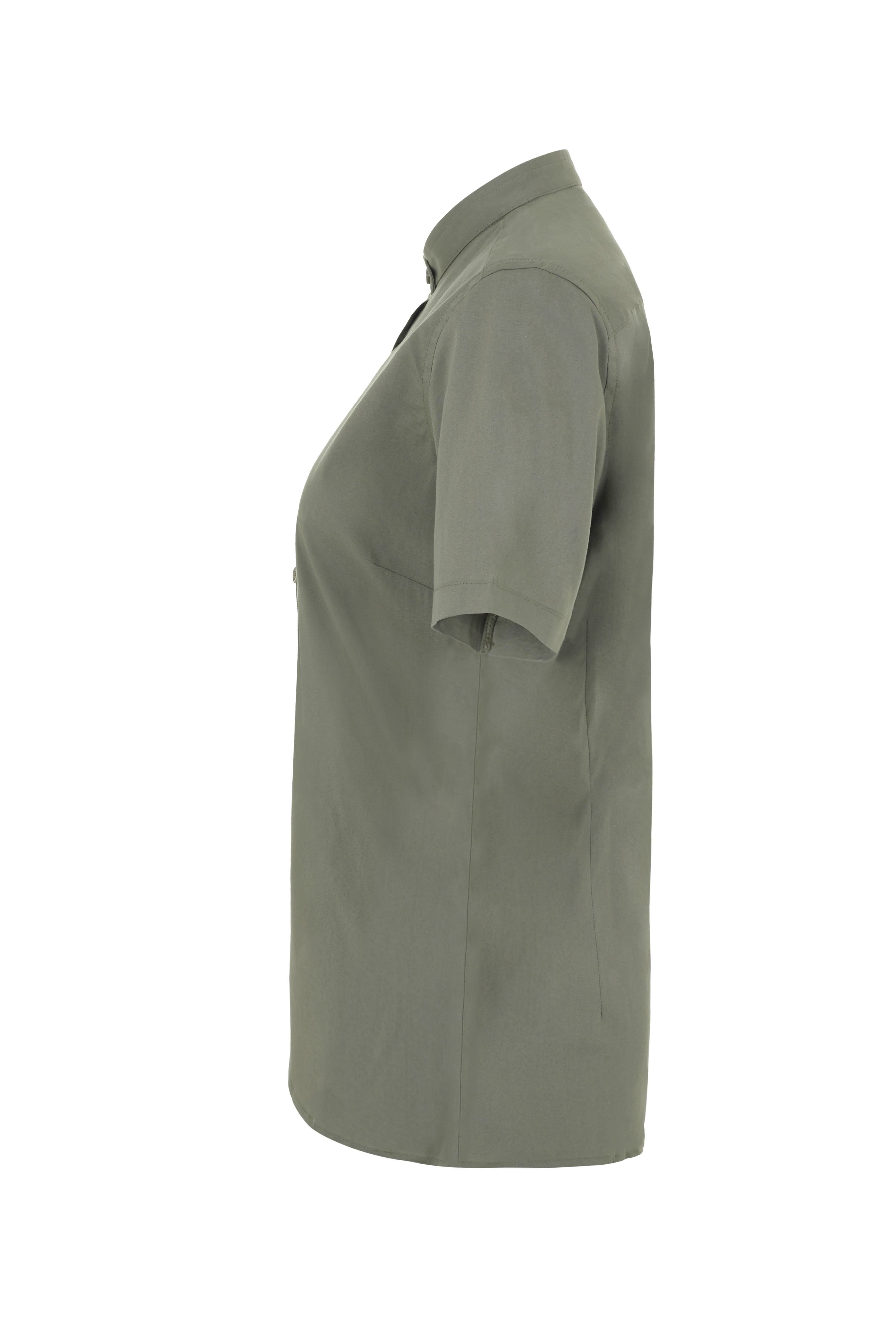 Camasa dama maneca scurta poplin stretch guler tunica verde masliniu deschis V405014S