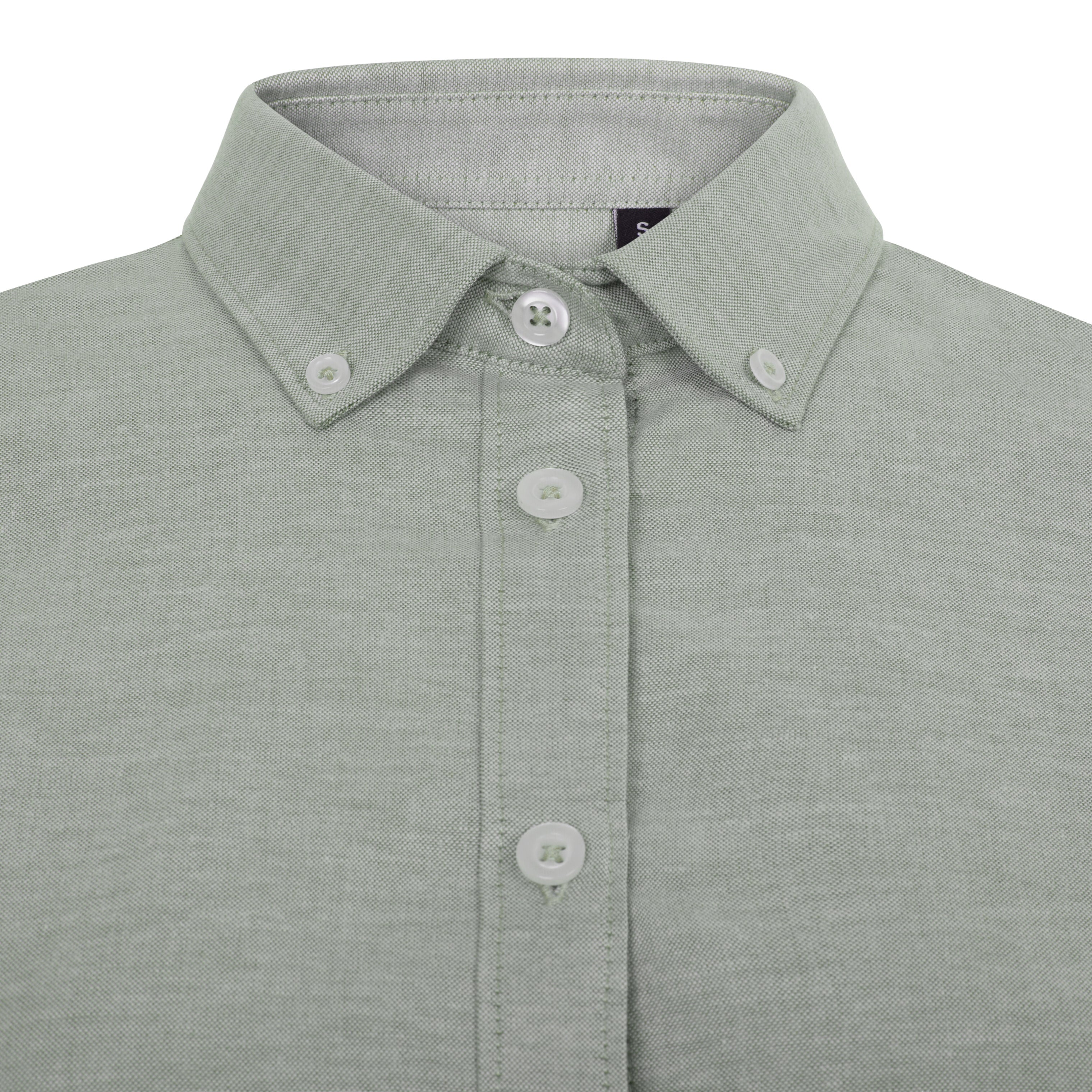 Cămașă Oxford 405025S pentru damă cu croială feminină, guler cu nasturi, material elastic și închidere clasică. Ideală pentru mediul profesional.