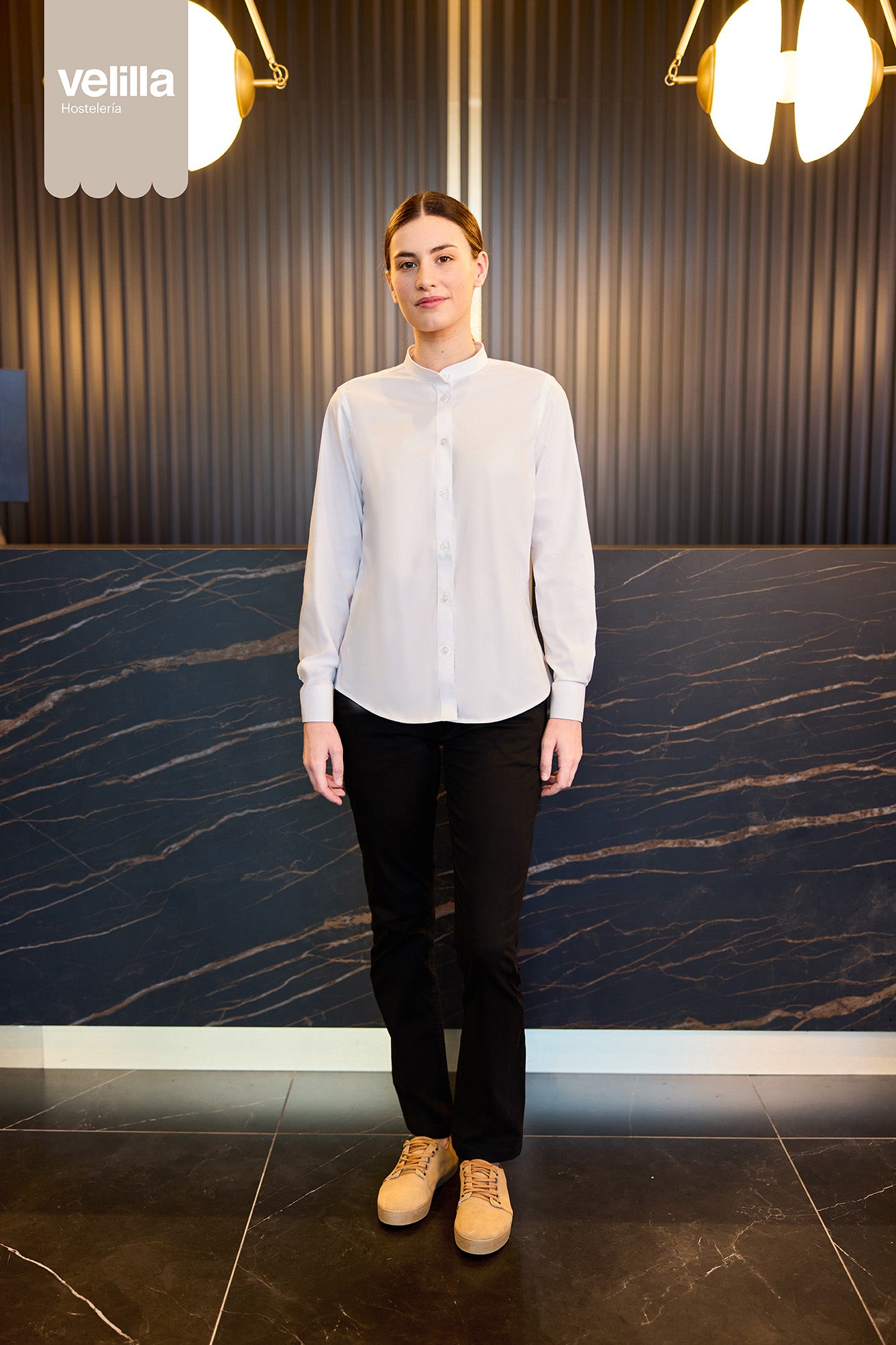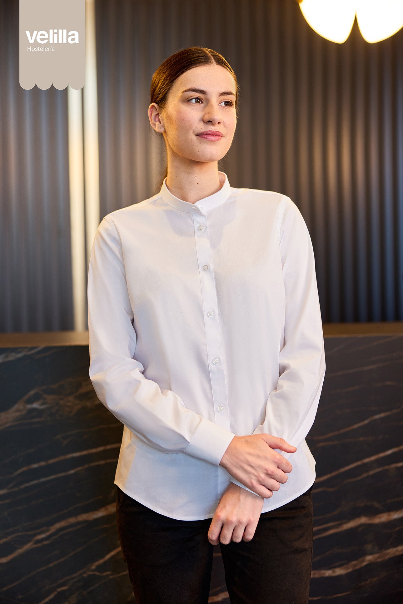 Modelul 405015S oferă un mix ideal între stil profesional și confort: mâneci lungi cu mansetă rotundă, guler cu bandă, barete pe piept și spate, și țesătură stretch 115g. Adaptată pentru o purtare zilnică intensă.Caracteristicile principale ale produsului: