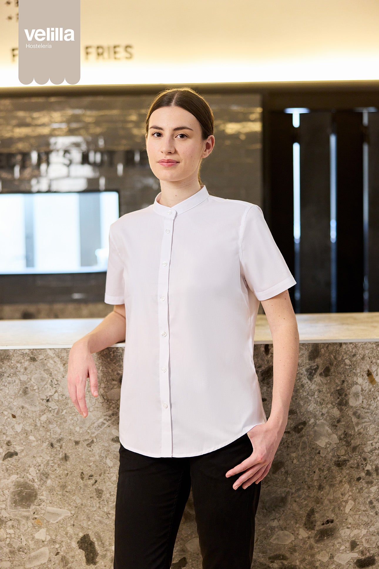 Cămașă damă din material stretch, cu croială confortabilă și detalii elegante – ideală pentru uniformă profesională.