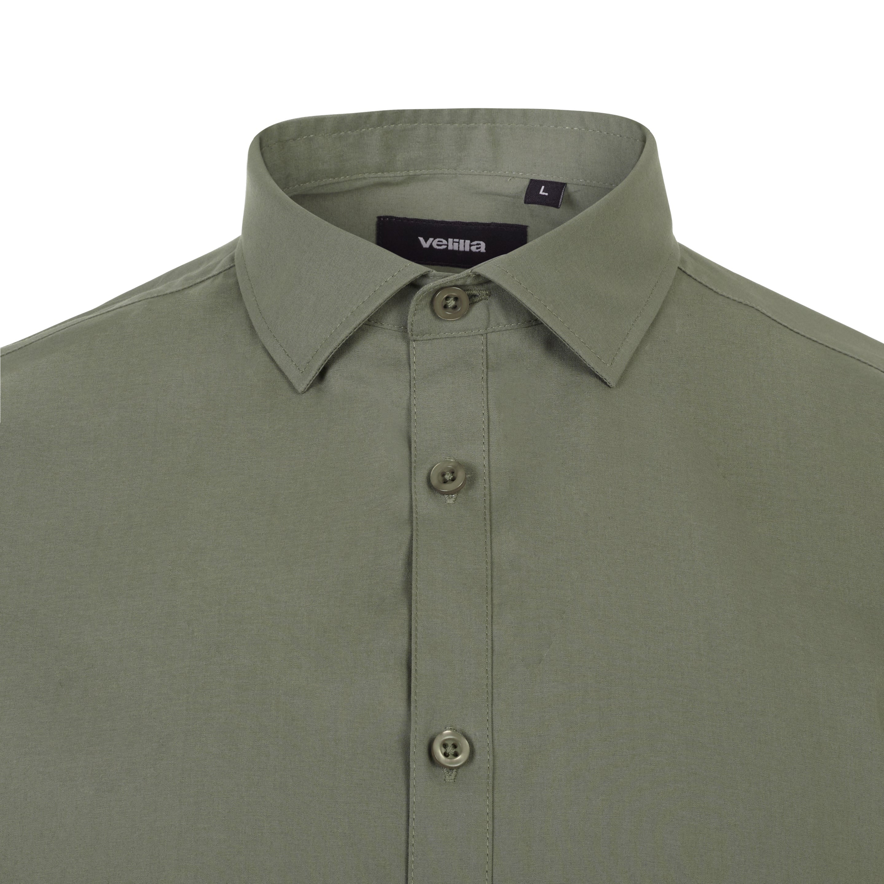 Camasa barbat maneca lunga poplin stretch guler tunica verde masliniu deschis V405013S