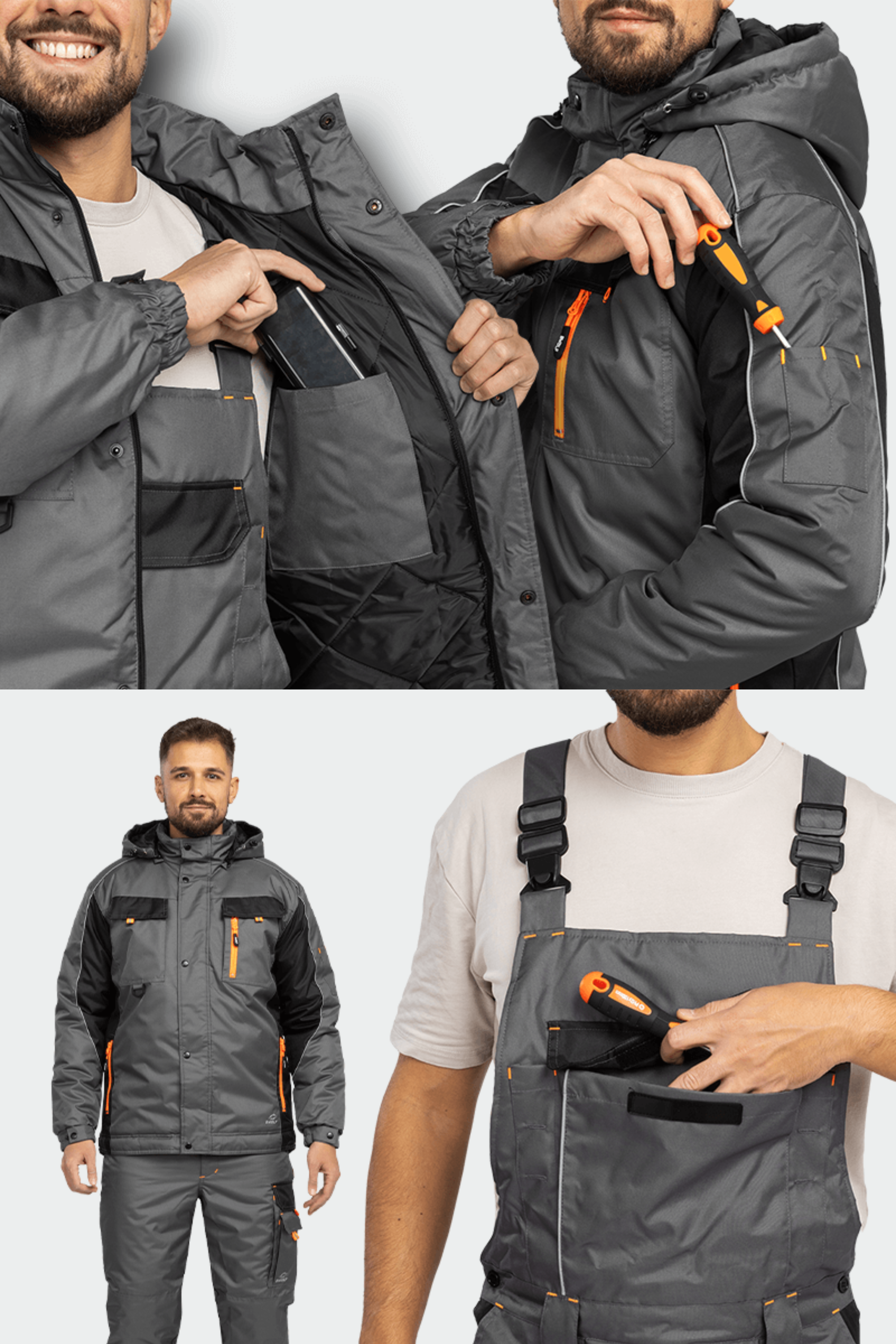 Costum iarna impermeabil matlasat poliester Braver gri/negru cu elemente portocalii