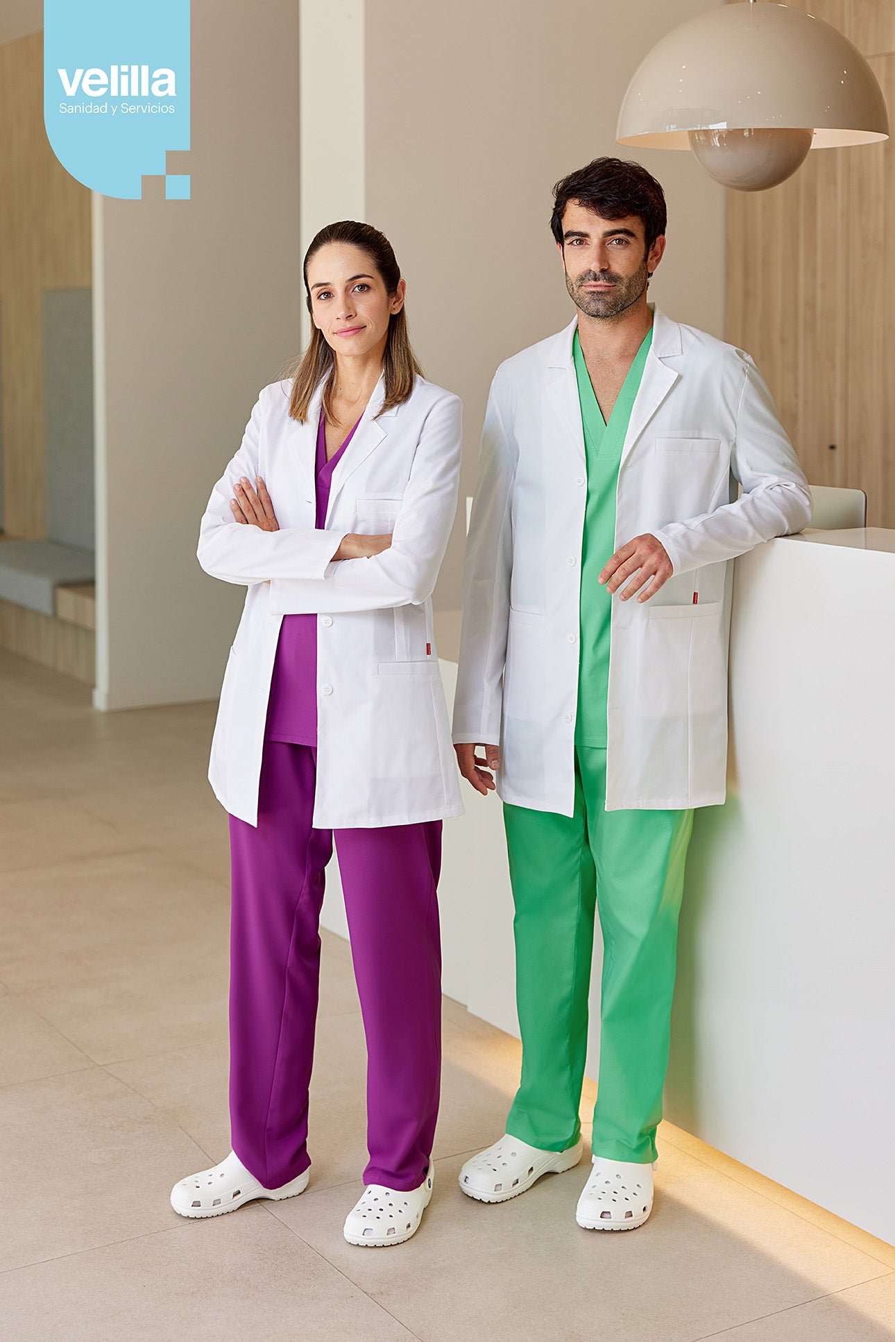 Modelul 539008S este un halat scurt și ergonomic, cu închidere frontală cu nasturi, deschidere spate, cusături de întărire și 3 buzunare aplicate. Realizat din material stretch pentru libertate de mișcare.Caracteristicile principale ale produsului: