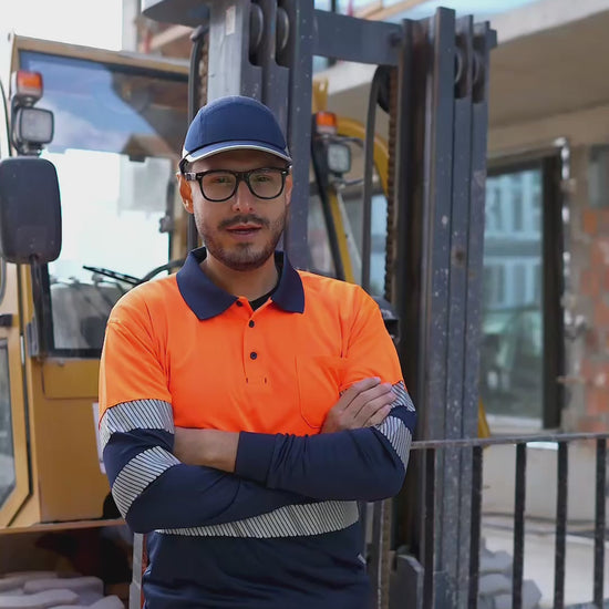 Tricou bicolor cu benzi reflectorizante segmentate maneca lunga GRS albastru marin/galben hi-vis V305635