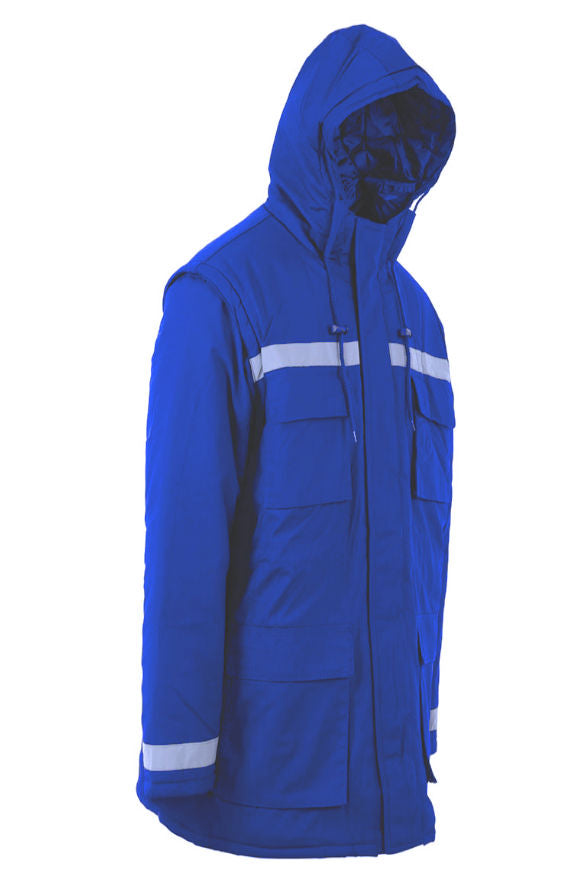 Scurta de iarna 2 in 1, groasa si termoizolanta, imbracaminte de protectie, utilizata in medii cu temperaturi scazute, fara umiditate,recomandata pentru riscuri minime, asigura protectie impotriva frigului si poate fi purtata in constructii, logistica, transport, servicii, uz general.