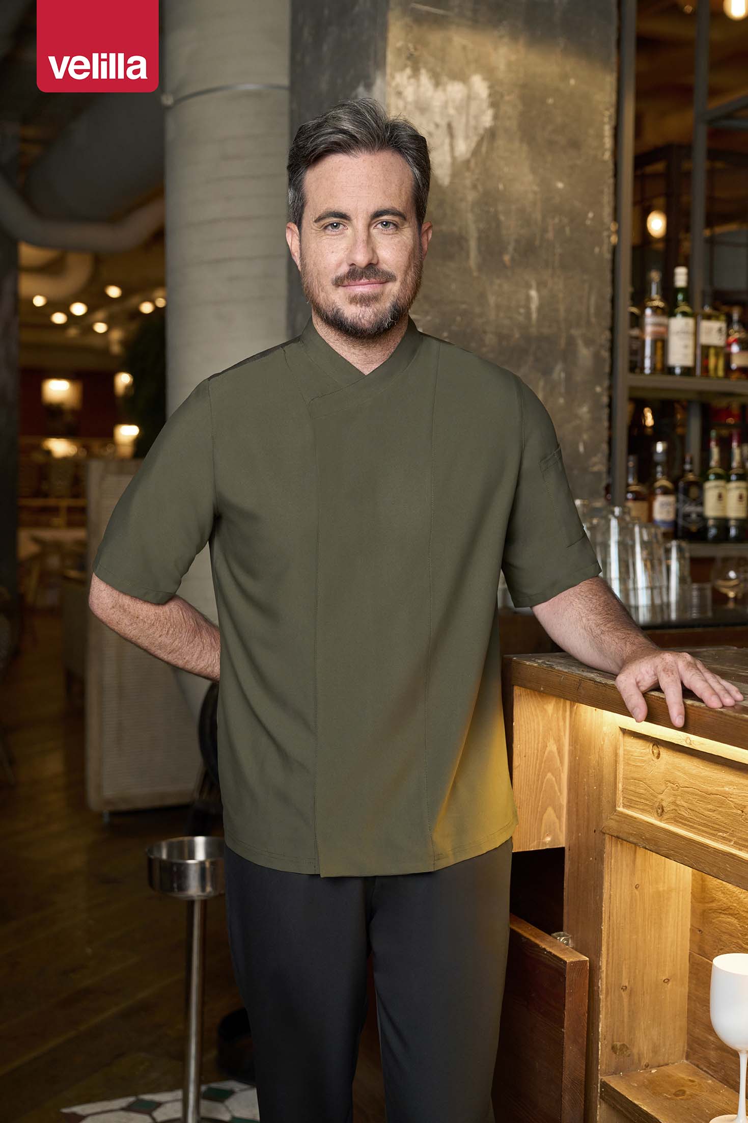 Tunica bucatar microfibra maneca scurta verde masliniu V405209 (VEL_405209_36)