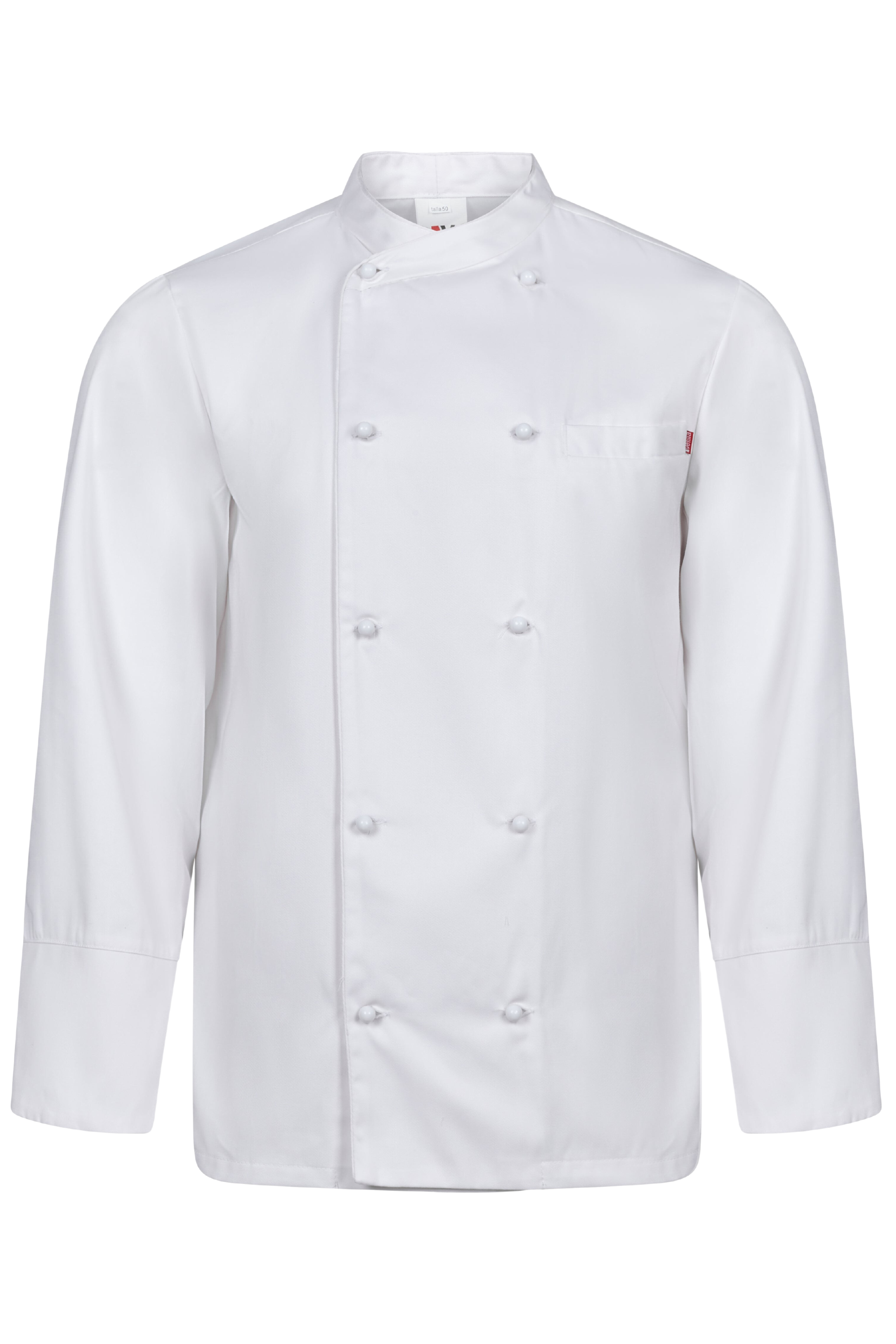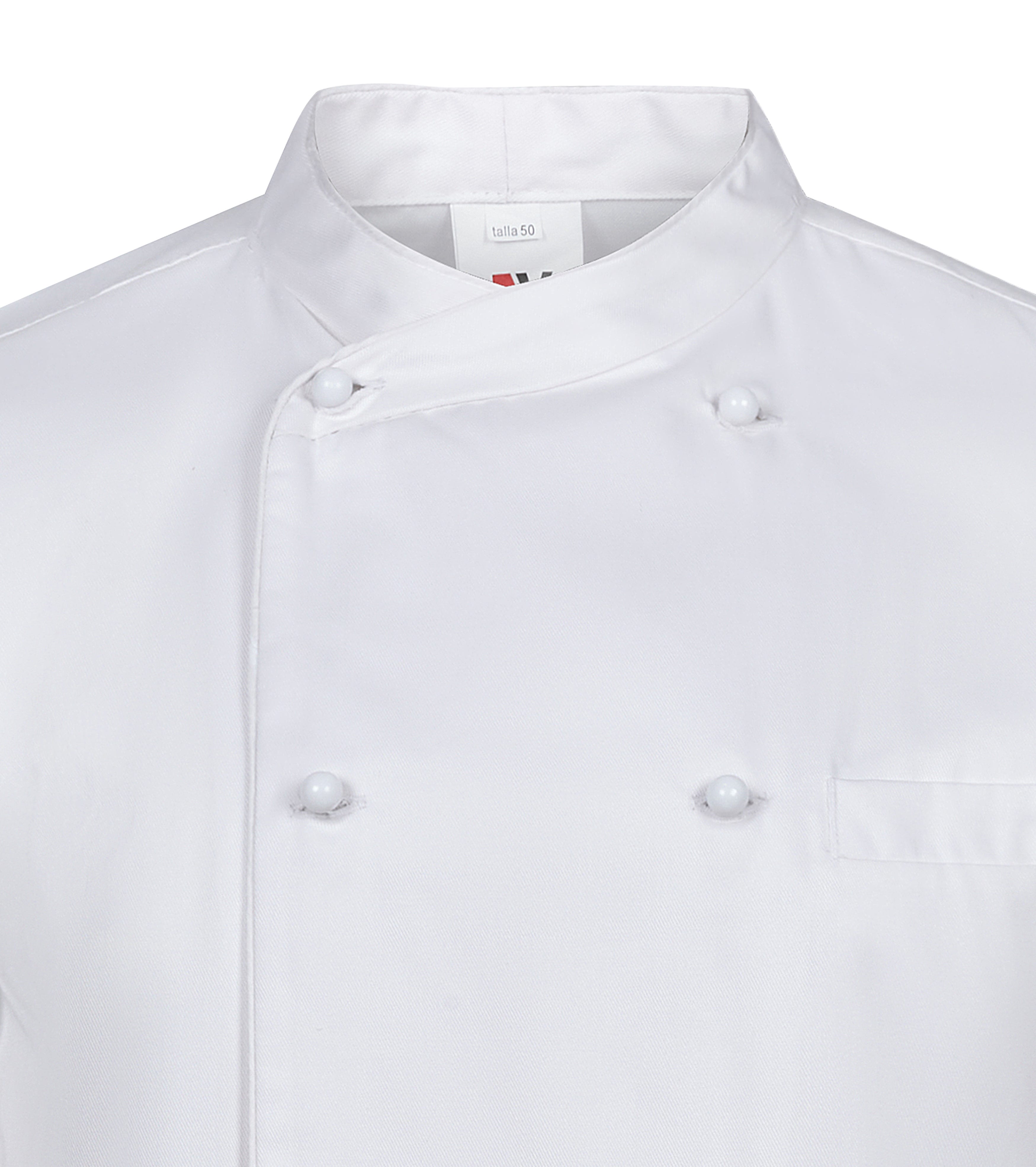 Tunică ENELDO realizată din tercot 200g (65% poliester + 35% bumbac), cu închidere dublă frontală, guler cu bandă, mâneci cu deschidere la manșetă și pense la spate pentru ajustare. 1 buzunar pe piept. Ideală pentru bucătari profesioniști. Design fără cusături laterale pentru mobilitate sporită.Caracteristicile principale ale produsului: